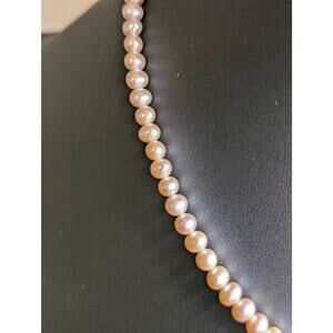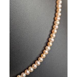 4mm - 5mm Genuine Pink Pearl 18" Strand Necklace W/ 14k Gold Clasp Need Restrung. Pre-owned, these pearls are lovely, and the clasp tests as 14K gold. They do have some stretch in the cord. I would personally have them hand-knotted and restrung to last a lifetime. Timeless, classic elegance.
