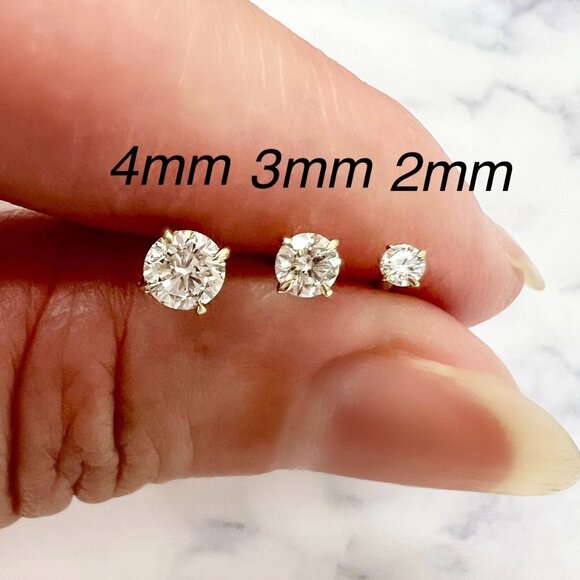 4mm Diamond Stud Earrings 14K Gold, VVS EF Lab Diamond, Solid Yellow Gold Studs