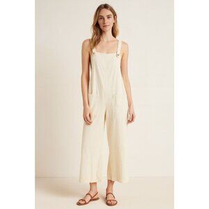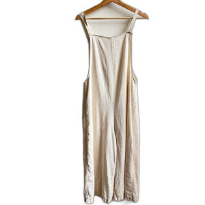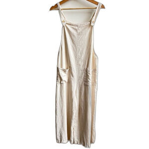 4our Dreamers Tan Linen Blend Cropped Wide Leg Overalls Boho size Medium