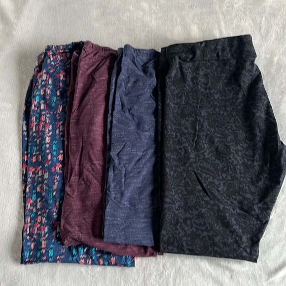 4-Pack legging set. All full length except blue space dyed is calf length. Soft and comfy. Brands include Jockey, Sonoma, Matty M. Gently worn.
