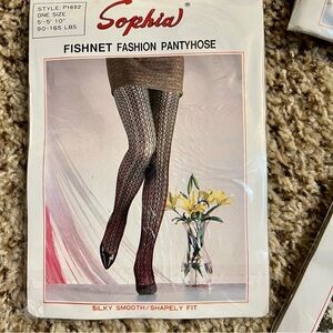 4-pack bundle Vintage SOPHIA fishnet Fashion Pantyhose women’s OS Silky smooth