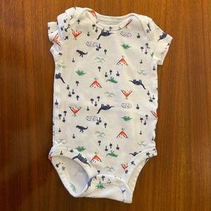 2 dinosaur, 1 black and white striped, 1 tree motif