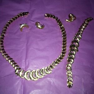 24k gold plated crystallized crescent moon shaped earring, necklace, bracelet and ring set