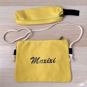 Stylish Maxixi backpack.. Its sleek design and practical pockets make it a must-have accessory. Comes with matching tote, pouch, and pencil case