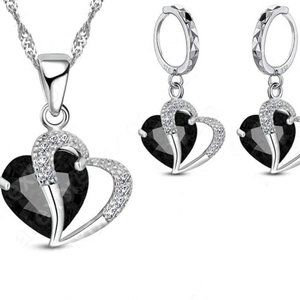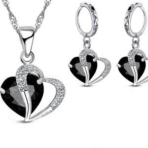 ⭐4pc Bundle Sale⭐ Black Diamond Hearts Pendant And Earrings &18"Chain 925 Silver