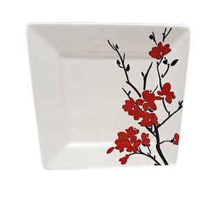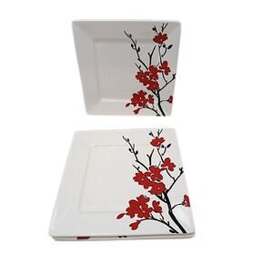 4pc Coventry Makayla Porcelain Square Japanese Blossom 8" Salad Plates Sushi