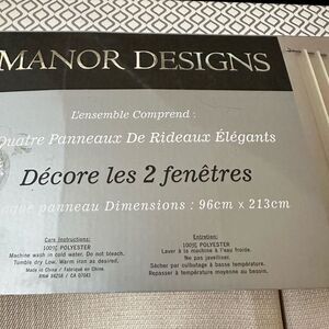 Set of 4 panels solid off white beige or cream textured fabric curtains in new unused condition. Grommet top. Clean nonsmoking home. Cannot bundle with other items due to weight.