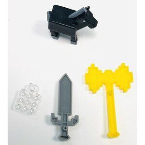 4pc Lot Miniature Mini MINECRAFT Toys Weapons Horse Figure Yellow Axe Gray Sword