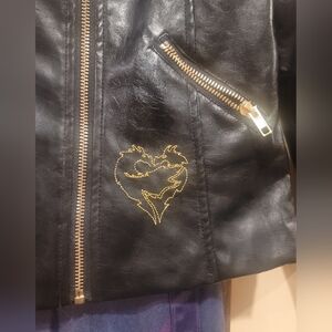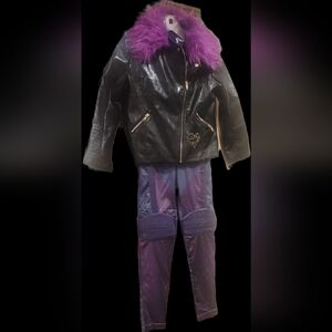 -Disney Designed girls Descendants faux leather jacket MOTO JACKET L removable fur and use the rest of the year! Stay warm while trick or treating! Not "costume", but a real jacket!