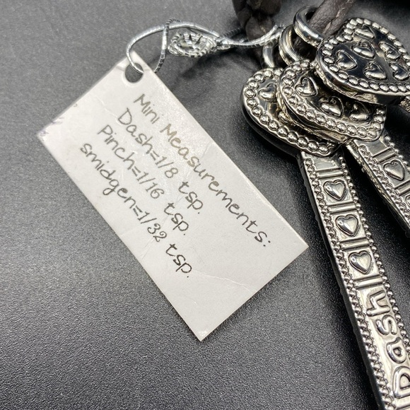 4pc Mini Hearts Measuring Spoon Set GANZ Dash Pinch & Smidgen With Hook. Set of 3 Measuring Spoons with Hook are New and have not been used. Cute heart shaped measuring spoons are gift-giving quality and perfect for Valentine’s Day! #26