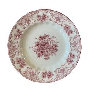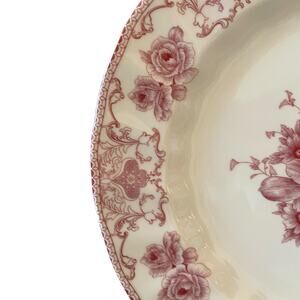 4pc Palate & Plate Victorian RED Rose Floral 10.5" Dinner Plates Scalloped