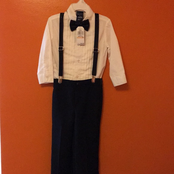 Nautica four piece set bowtie shirt pants and suspenders