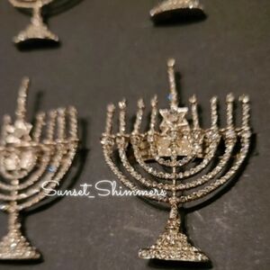 4pc Set Silver Hanukkah Napkin Rings Rhinestone Crystal Minorah 2.5" New
