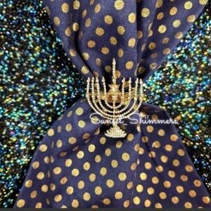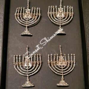 4pc Set Silver Hanukkah Napkin Rings Rhinestone Crystal Minorah 2.5" New