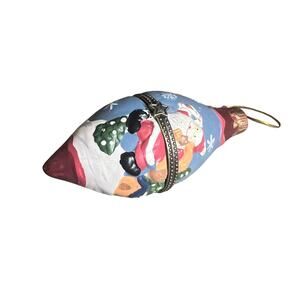 This 4-piece set of porcelain hand-painted hinged trinket box Christmas ornaments is a charming addition to your holiday decor. Each round ornament features a festive Santa Claus design in a medium size, perfect for adults to enjoy. These vintage-style ornaments are hand-painted with a multicolor pattern, adding a touch of artistry to your Christmas tree. Made in China in the 1990s using pottery production technique, these ornaments are decorative and hanging, making them a unique and collectible item for any Christmas enthusiast.