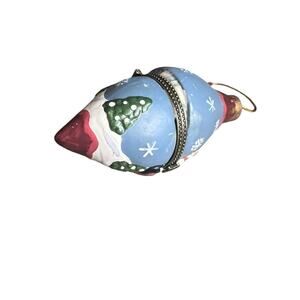 4pc Set of Porcelain Hand Painted Hinged Trinket Box Christmas Ornaments