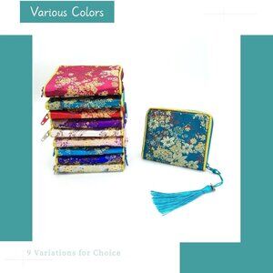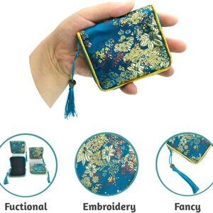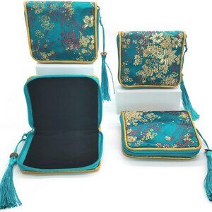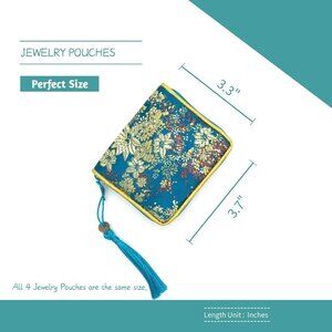 4pc Zipper Jewelry Pouches Brocade Cosmetic Bags Embroidered Coin Purses Wallets