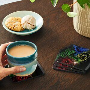 4pc harry potter Hogwarts houses coffee cup mug coaster square glazed ceramic