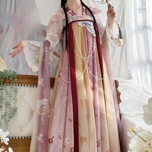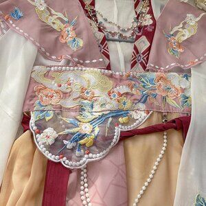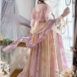(4pcs) 1 top + 1 dress + 2 shawls, floral cute qixiong modern hanfu set