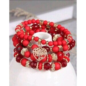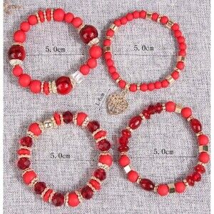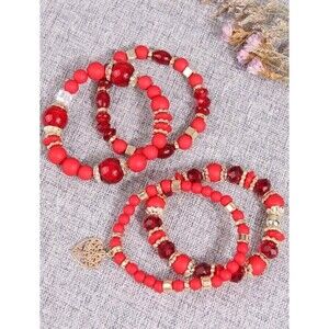 4pcs Simple Multilayered Beaded Charm Bracelet With Heart Pendant For Women