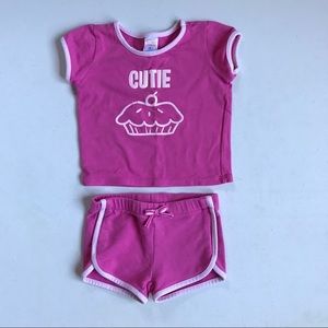Old Navy t-shirt and shorts (6-12 months) est. 1989 yellow top (6-9 months) Basic line orange top from organic cotton (71 cm)