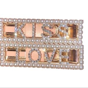 Pearls and gems Embellished monogrammed hair clips LOVE and KISS - mix n match FREE with $50 purchase