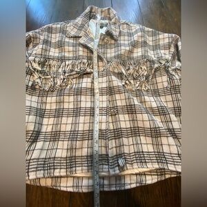 4sienna Plaid Fringe Shacket Black And Tan Size XS B13