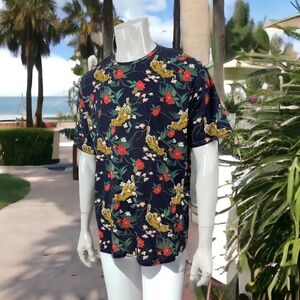 4th Dimension Mens XL Graphic Tiger Floral T Shirt Crewneck Short Sleeve NWT