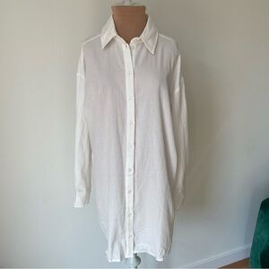 Lightweight and airy cotton enhances the relaxed vibes of this long, slightly slouchy shirt framed with a button front and roomy dropped shoulders. 100% cotton Machine wash, line dry Imported. New without tags.