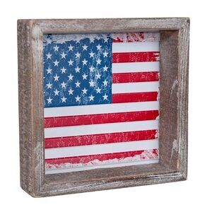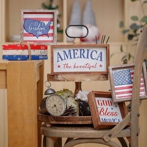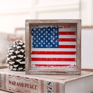 4th of July Frame Metal USA Flag Block Sign American Table Patriotic Wood Decor