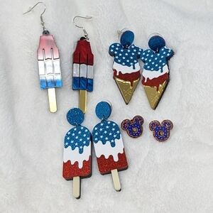 4th of July Independence Day American Themed Bundle of Earrings Disney Mickey Mouse Bomb Pop Drop Earrings and Red White and Blue Ice Cream Drop Earrings Mickey Stud Earrings