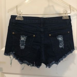 • Style= Frayed jean shorts, high cut, and semi-high waisted