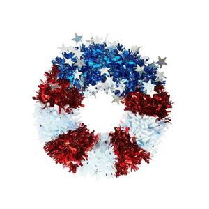 •Way To Celebrate Patriotic Stars and Stripes Tinsel Wreath, Red/White/Blue,16"