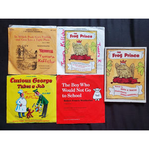 4x VTG Scholastic Records Curious George-Pooh-Frog Prince-Boy School w/O…