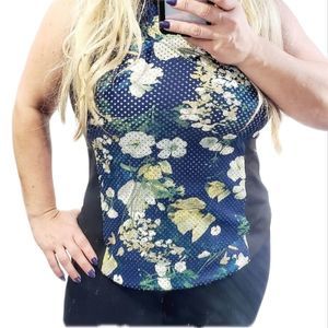 4x$25 Rachel Roy blue floral perforated sleeveless exposed zip top XL