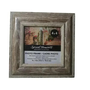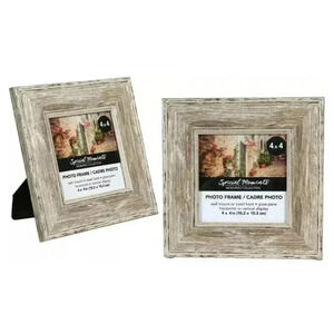 Display your cherished memories with this set of 4 vintage/retro style photo frames. Each frame is made of distressed wood and features a rustic pattern that adds a touch of charm to any room. The frames are designed to hold 4x4 photos and have a photo capacity of one.