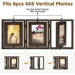 🧿Double Sided Rotating Photo Frame: Picture frames collage hold 6 vertical pictures in total on both back and front sides for desk or tabletop, counter or shelf, can be 360° rotary display, very perfect for 4X6 sizes image.