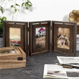 4x6 Picture Frame Rustic Wood Hinged Folding Triple Picture Frames Collage