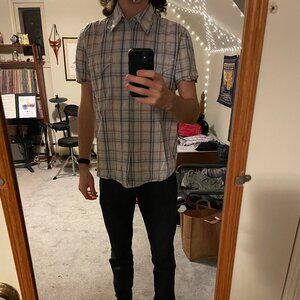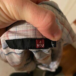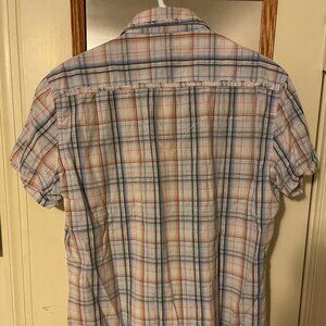 4you Men's Large Short-Sleeve Button Down Shirt - Red, White & Blue Plaid