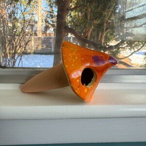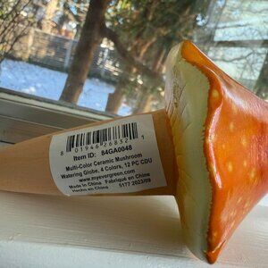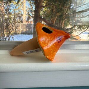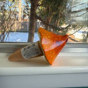 5 1/2" Orange Ceramic Mushroom Watering Globe Glazed Speckled