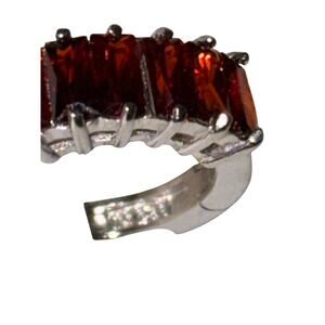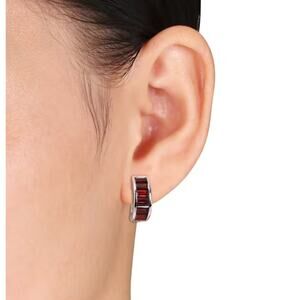 These appealing Hoop Earrings are crafted in shimmering sterling silver. These stylish earrings feature 14 baguette-cut, channel-set, garnet gemstones. Polished to a brilliant shine, these enchanting earrings are perfect for a dinner date or when you go to meet his family. A versatile accessory that you will never regret investing in. To get a magnificent look, wear a cocktail ring.