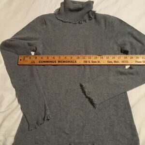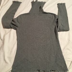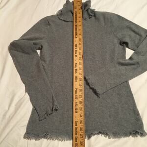 Magaschoni !00% cashmere sweater grey turtleneck fringed long sleeve sz M