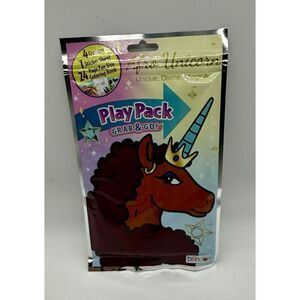 The product is a set of 5 Afro Unicorn Grab & Go Play Packs, featuring crayons, stickers, and coloring books, designed as party favors. The items come in a multicolor theme with a focus on unicorns, particularly Afro Unicorn. This party favor pack is perfect for adding a fun and creative touch to a party, especially for those who love unicorns and enjoy coloring and crafting activities. It is a convenient and engaging gift option to delight guests at a party or event.