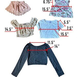 Show typical signs of wear, and some loose threads on items. Mudd tank top has the most signs of wear - fabric is on the thinner side and pilling on the inside (see photo).