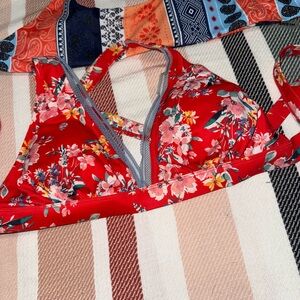🌺 Red Floral Crisscross Halter Top – feminine and supportive, perfect for a flirty beach look