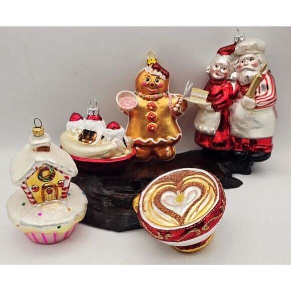5 Blown Glass Christmas Ornaments ~ Gingerbread Mr And Mrs SANTA CLAUS Sweets