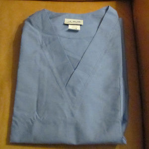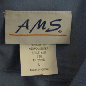 Total of 5 Blue AMS Scrub Tops Size LARGE V-neck Chest Pocket NEW One total price for all 5 scrub tops is $32. You save $58