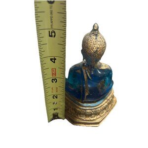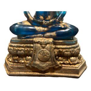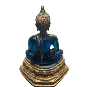 5” Buddha Vintage Blue-Gold Lucite Resin Meditation Sitting Statue Figure