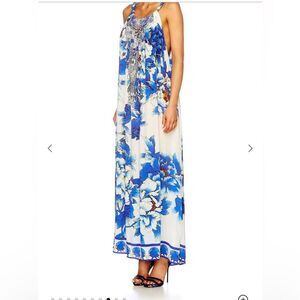 The Ring of Roses Drawstring Dress combines a fine floral print with a soft and relaxed silhouette. Featuring a gathered drawstring neckline, a wide tie to neck and a back neck split, this luxury resort wear piece exudes bohemian charm. Crystal embellishments provide feminine accents to the simplicity of the cut; which can be styled in a multitude of different ways. Wear yours as strapless, halter neck, braided racer back and more.