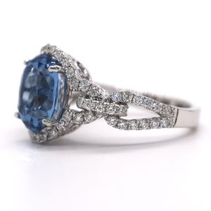 Center aqua 4 carat Oval Deep Blue Hawaii set in forever diamond setting